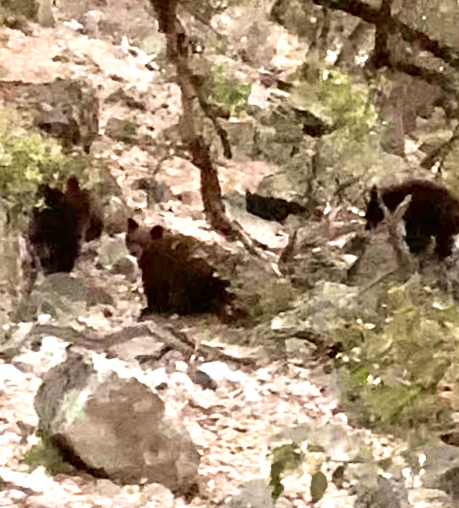 Needless to say, daylight was fading quickly so I decided it would be best to start heading back even though my tummy was still growling. (It still amazes me that I don’t weigh like 100 lbs). I’m making good time then I stop dead in my tracks and see 3 sets of beady eyes staring at me from about 25 yards. Ummm….. the bear spray I bought is sitting in my niece’s room near San Diego because I can’t take it on the plane home. I am fortunate they were all babies and just playing, as they kept on moving on their original path.