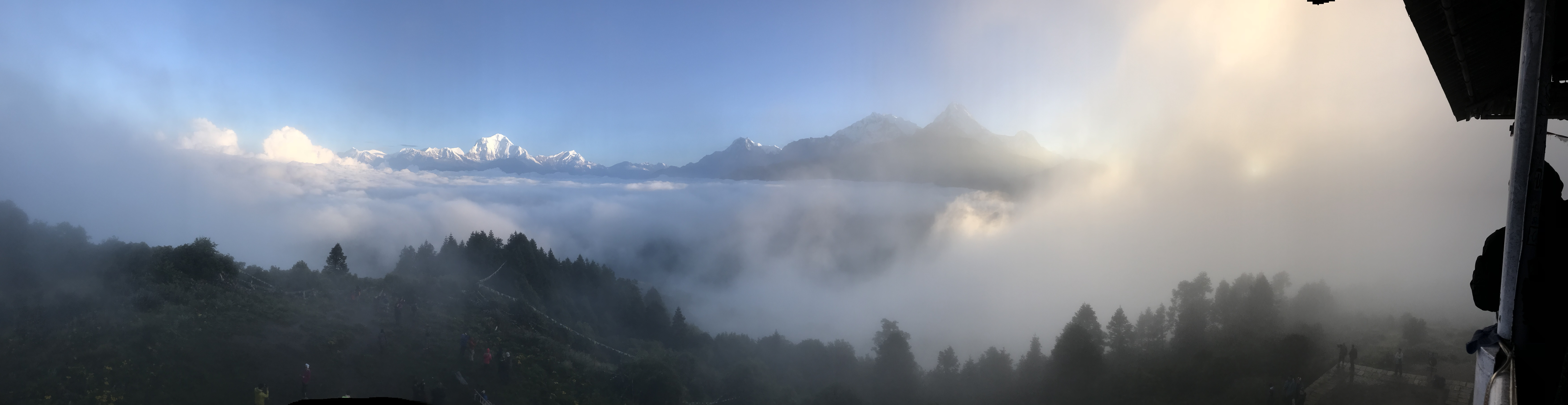 415am wake up call to trek 3290 steps straight up with only our headlamps to light the way. Heavy fog cleared just in time for sunrise to reveal a masterpiece. Above the clouds we were treated with a glorious view of the whole Annapurna mountain range & it took my breath away.