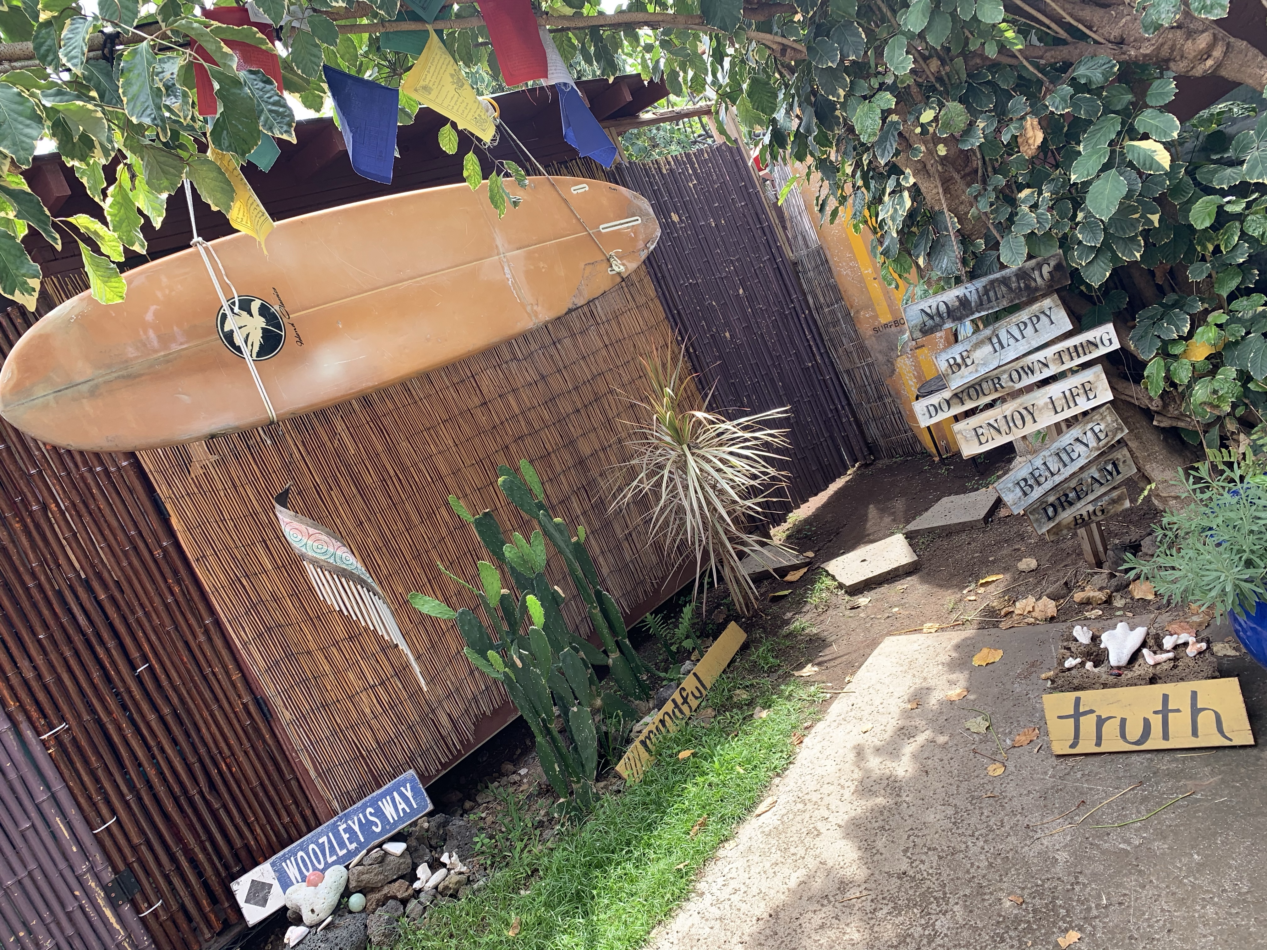 My 3rd week I decided to move places only because I found a cheaper option about a block away and my former place had been booked before I could extend. No biggie. This new spot didn’t receive my reservation but found a way to make it work with my own little “shack” on the corner of the garage. It was rustic but kinda kooky and chill. Neither place had AC, but with fans and being in March with highs in the upper 70s, it never phased me. Plus the addition of a salt water pool to help with my wounds worked out beautifully. The grounds had all types of soothing areas and sayings to get lost in. There were other tenants always coming and going. I used their bike to freely explore the Kona area (central west side) daily and hit the local snorkeling hot spots to my hearts content. And I could never forget how the stars lit up the sky nightly, with no light pollution.