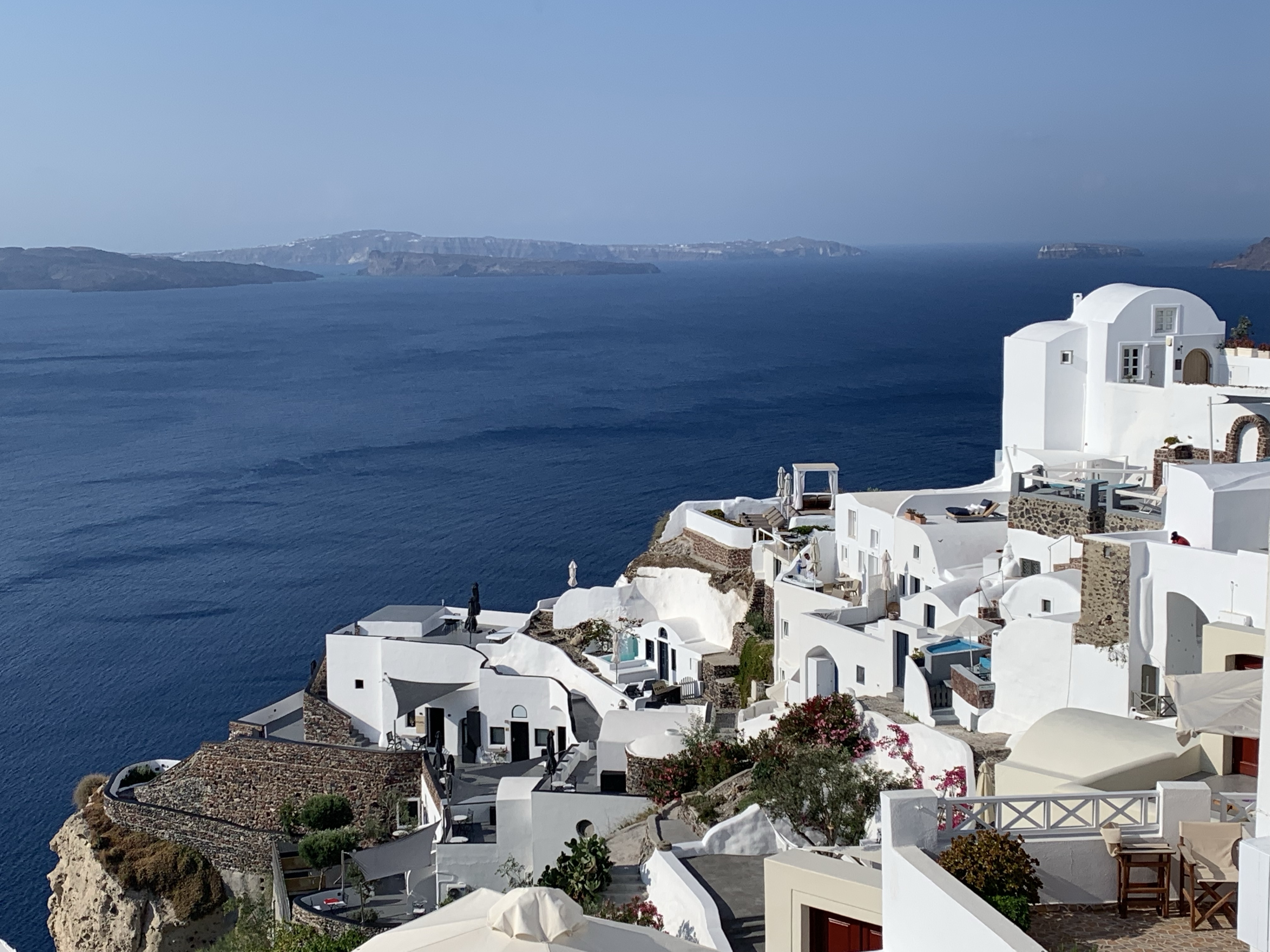 From high above the sapphire blue waters, the ritzy town of Oia (pronounced ea) on the island of Santorini is larger than life. Boutique cave hotels all painted white monopolize the towering cliff tops with a never ending labyrinth of alleyways to purposefully get lost in.