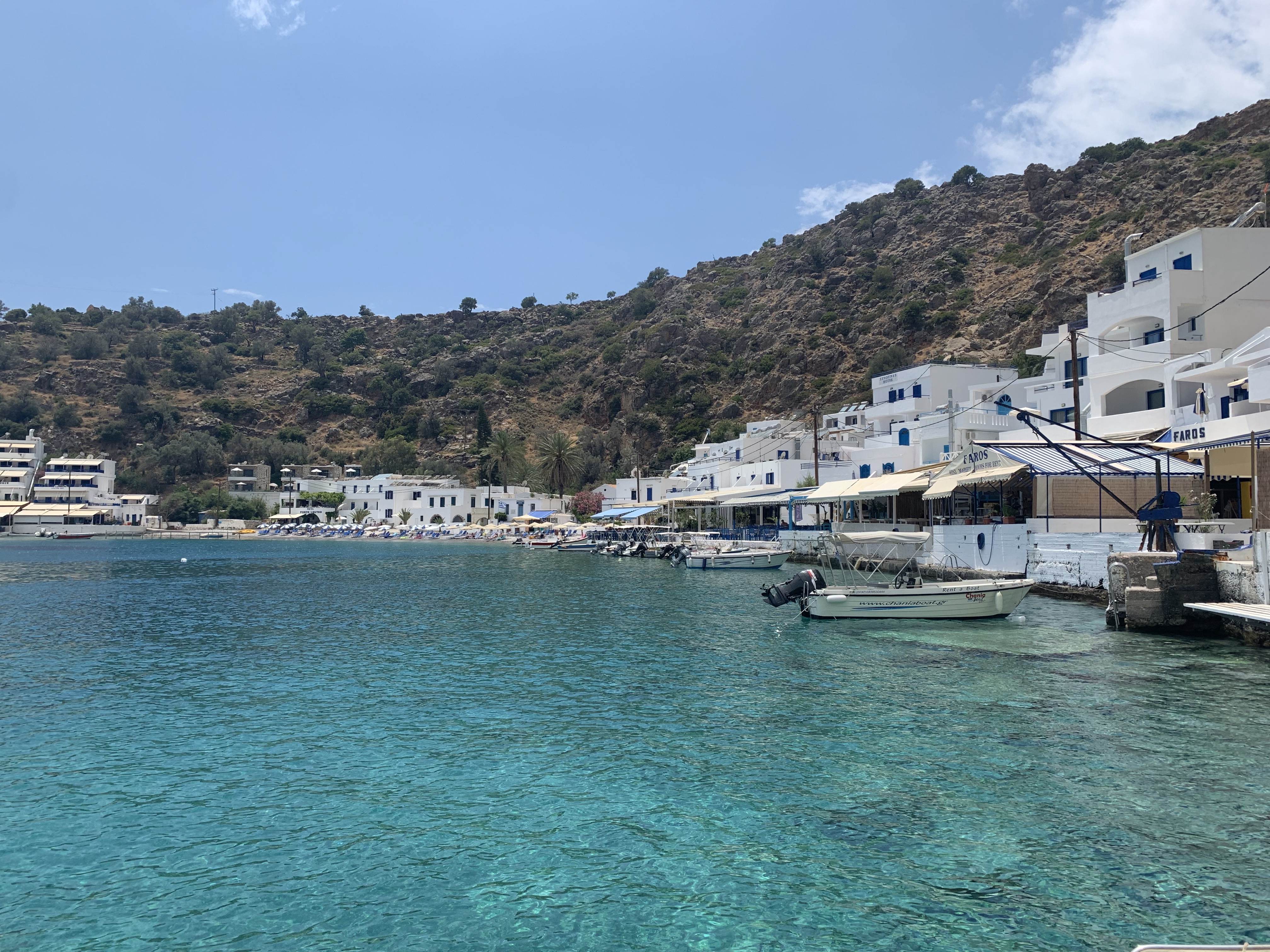 After trekking over 25km the past 3 days, I opted to jump on the boat taxi for the short 10 min jaunt to our next lodging. Ilana and I got whisked away to an unspoiled hidden bay. As we cornered a small lighthouse, a quaint white village carved into the cliffside came into view. This was our home for the next 2 days!