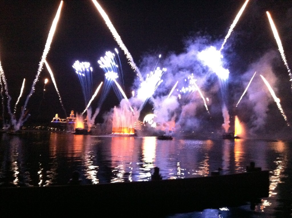 From the beautiful musical score, to the perfectly synchronized pyrotechnics, to the integrated laser show, to the images projected onto the futuristic ball gliding across the water, it was spectacular. I could hum every bar and predicted every shot. It was 20+ mins of pure joy.