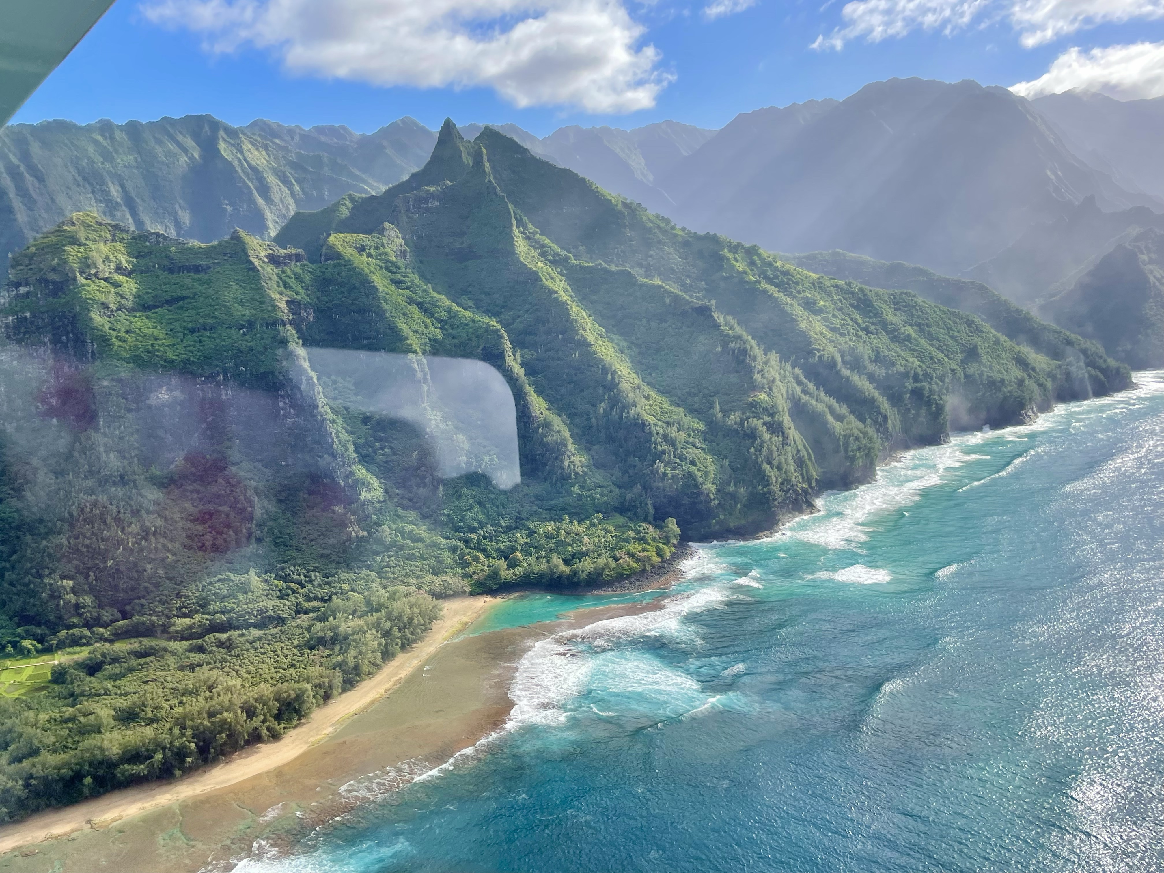 With only 6 seats, everyone was guaranteed a window view and our navigator was a very enthusiastic retired commercial airline pilot. The next 90 minutes we soared over landscapes out of a fairytale, as picture perfect as you could ever imagine with ridges carved out by thousands of years of erosion. My eyes were peeled for waterfalls cascading over cliff sides from recent rains, as the center of the island is one of the wettest regions in the entire world.
