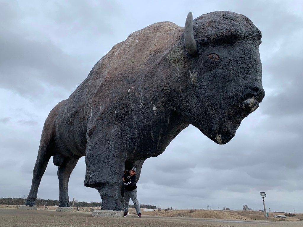 After a 3.5 mile hike & then a full day of driving from Voyageurs National Park in northern Minnesota, I bee lined across the eastern state line taking advantage of the 75 mph speed limit and stretched my legs at a few spots I had researched prior. I toured the old missile silos of Oscar 0 & November 33, met Dakota Thunder (the biggest Buffalo in the world), walked in the footsteps of the Northern Plain Indians at the Knife River Indian Villages National Historic Park, caught a glimpse of the blood red sunset over the vast farmlands and barely made it to the cliff top site of Salem Sue by twilight.