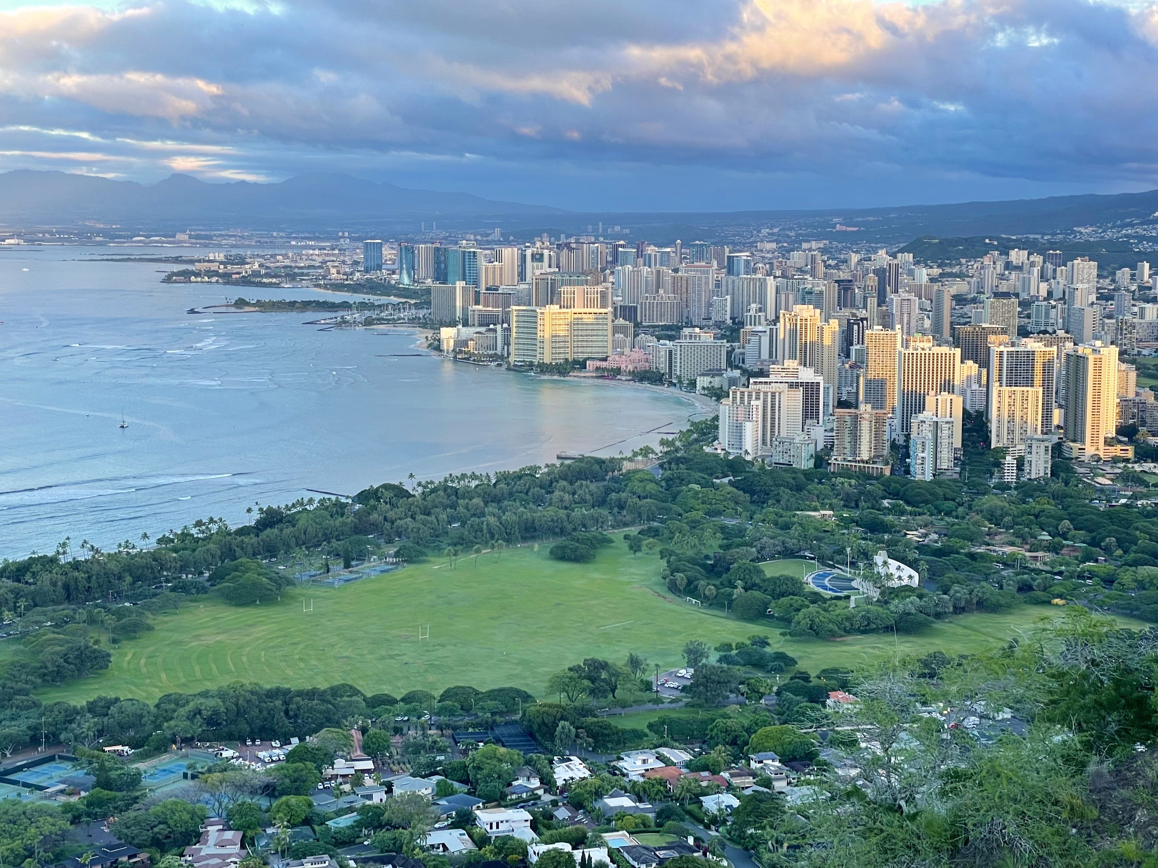 To no surprise due to my inability to function prior to 7am, I had forgotten my headlamp so I forged ahead just hoping not to misstep and cause a scene. Twilight guides the way and after a few sets of stairs and an eery tunnel, I join the groves of tourists patiently waiting for this spectacle way above the pristine beaches of Waikiki.
