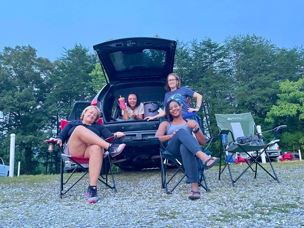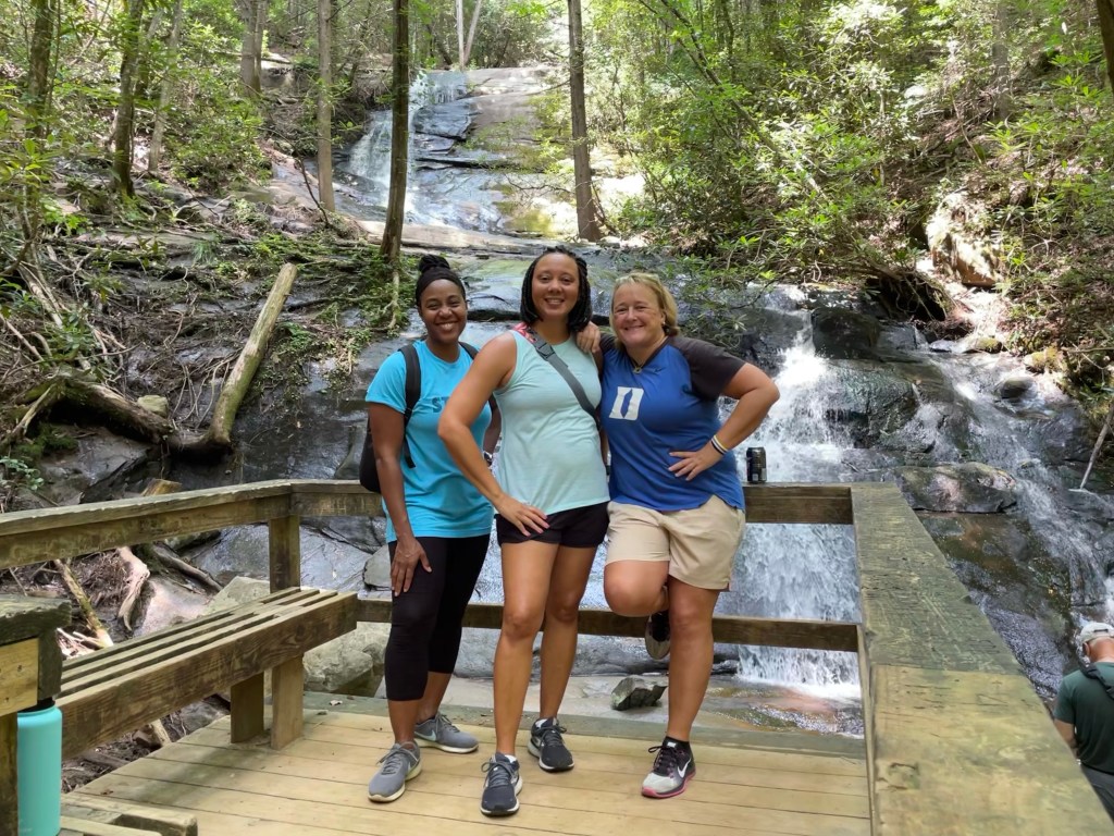 Twenty nine years of memories came flooding back and we enjoyed having no set agenda. I was stoked the girls wanted to go hiking so we set off on an easy 1 mile trek to a local waterfall. After a quick stop in the cute downtown of Blue Ridge, we enjoyed a serene night catching up on the porch swing while Alanda surprised us with her own version of a charcuterie “coochie” board.
