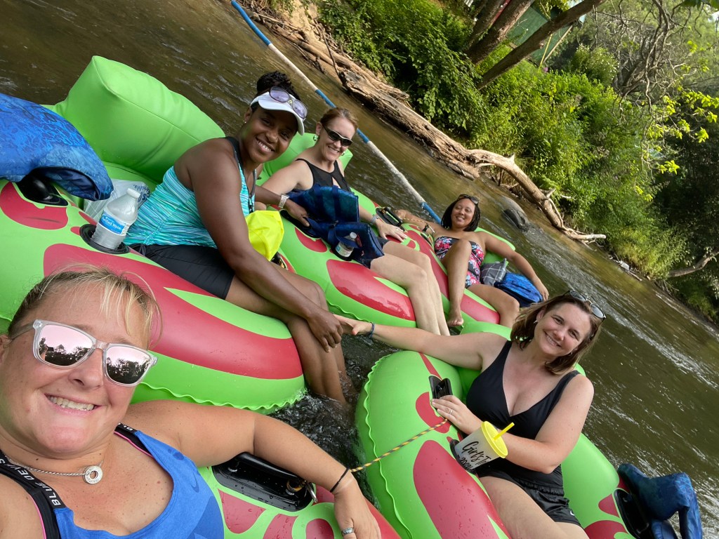 Saturday was an adventure. After a morning neighborhood stroll, we grabbed tubes for a leisurely 3 mile float down the Toccoa River. We tethered our 5 vessels together, blasted some country music, cut open our frozen margarita popsicles and started our voyage. Tons of laughs ensued while we maneuvered through mini rapids en route to our extraction point.