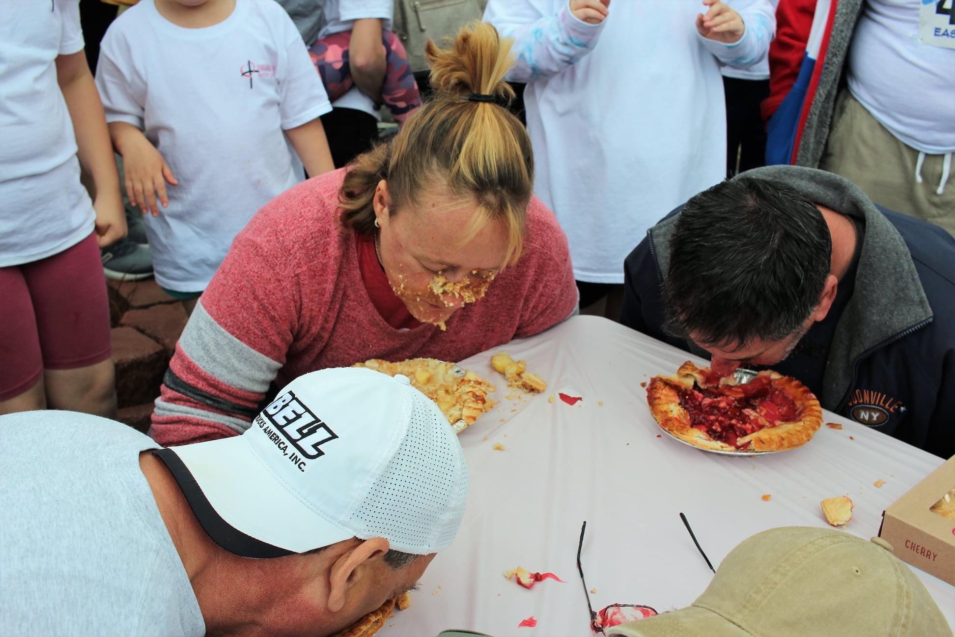 After learning there would be 17 pies ready to be devoured, I encouraged Olivia to stake out her spot. But the emcee switched gears and confirmed it was an adult only event. And she assumed I was going to represent. OMG!