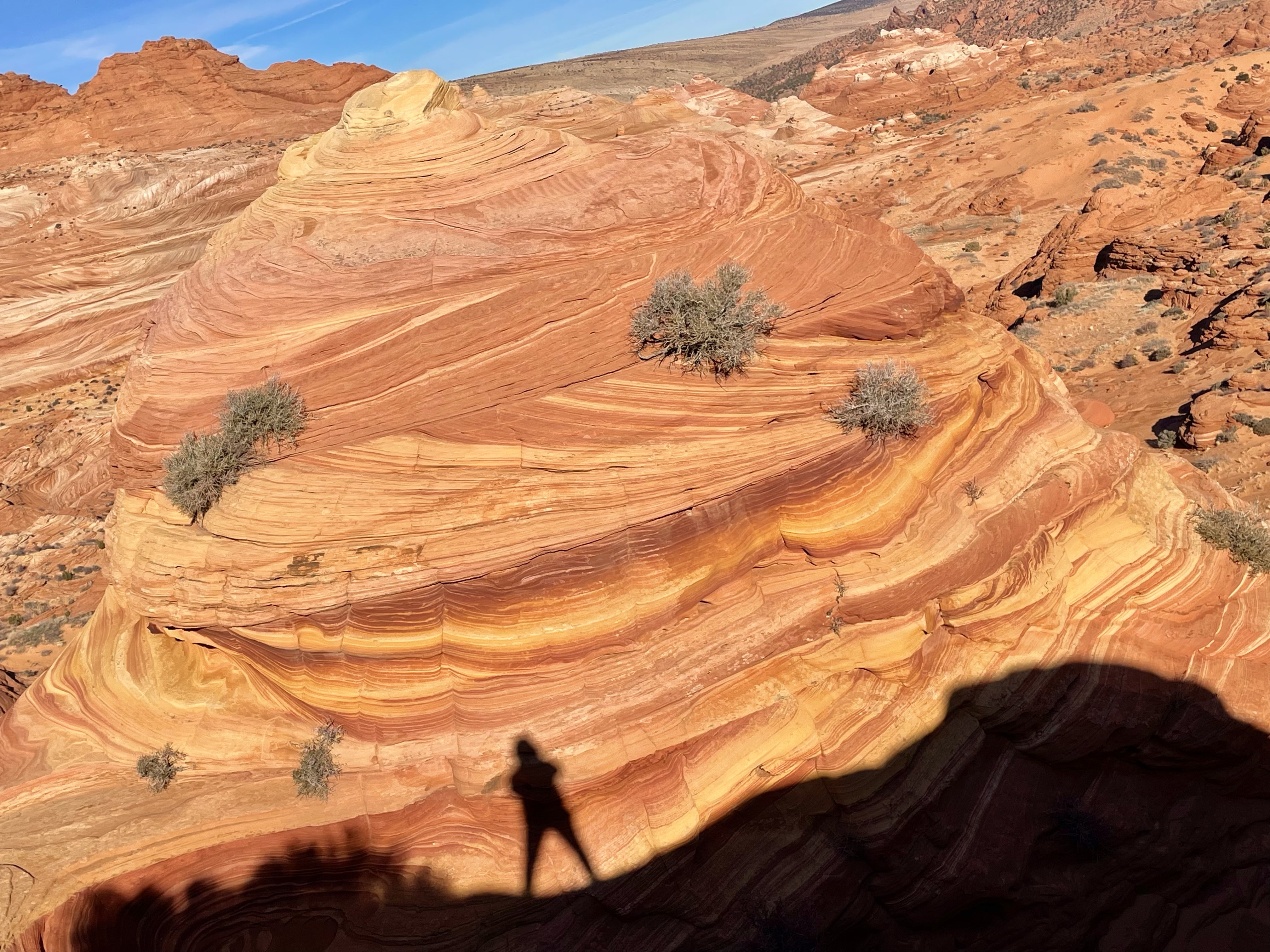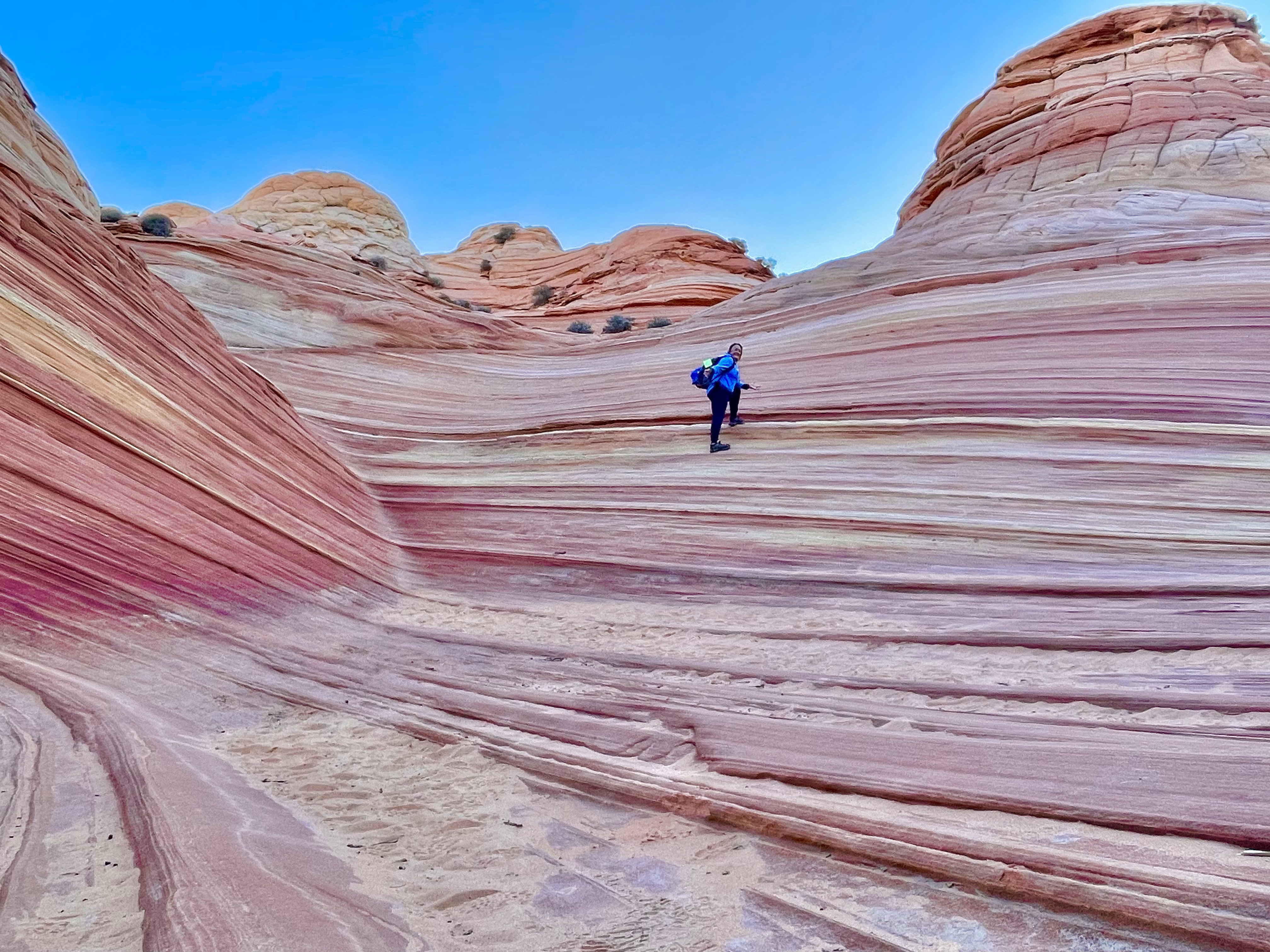 After 2.5 hours of pure joy, I knew I reluctantly had to start the return journey. Not until I had quickly slid down the big sand hill did I see the first sign of another human (they had gotten lost). Iβm still grateful and shocked that I got to enjoy the magnificent Wave to myself!