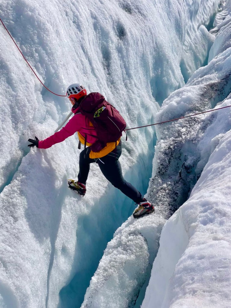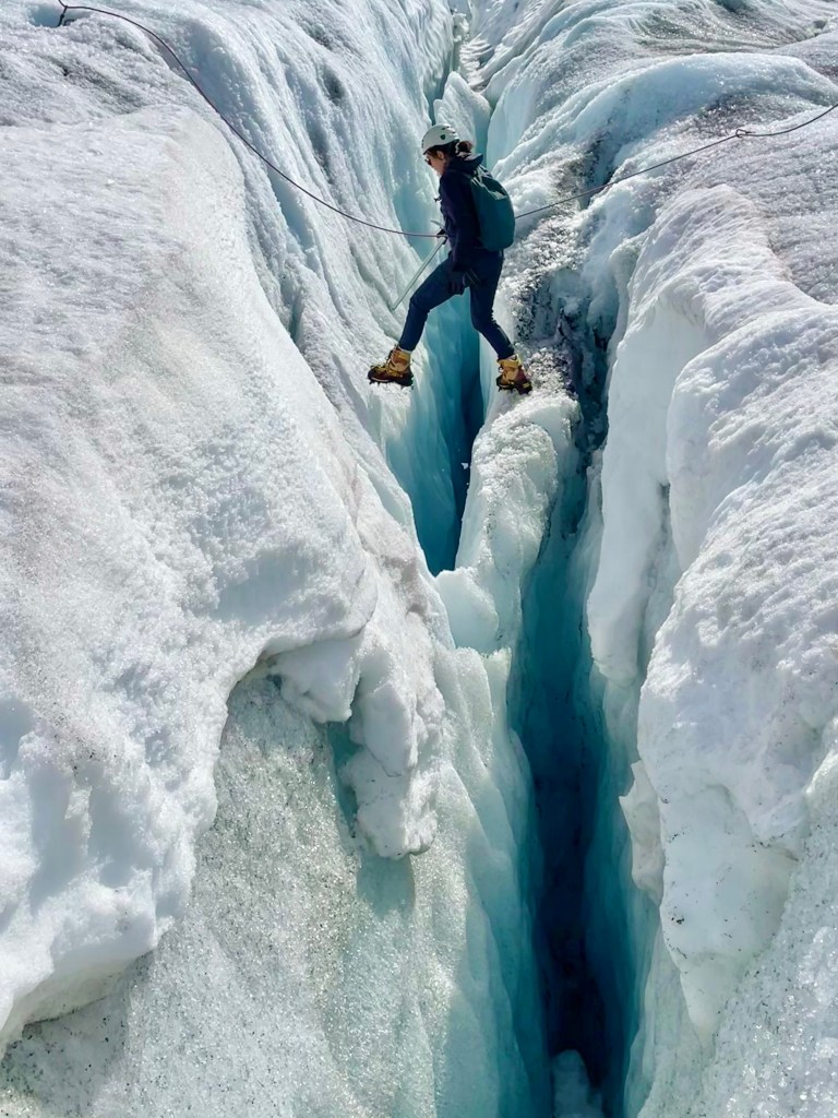Our wonderful guide challenged us by taking us down into a crevice. AYKM?!? It was a pivotal moment that we all bonded over. How many people can say they’ve taken a leap of faith over an ice ledge and used an axe to climb back out? It was surreal and so empowering.