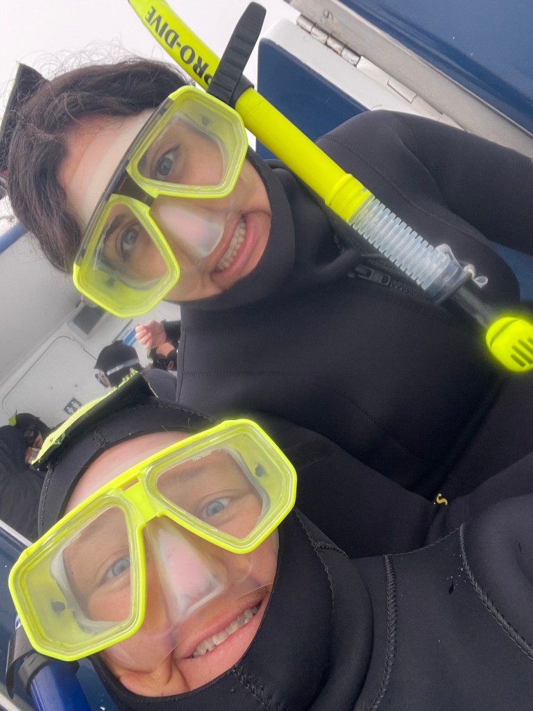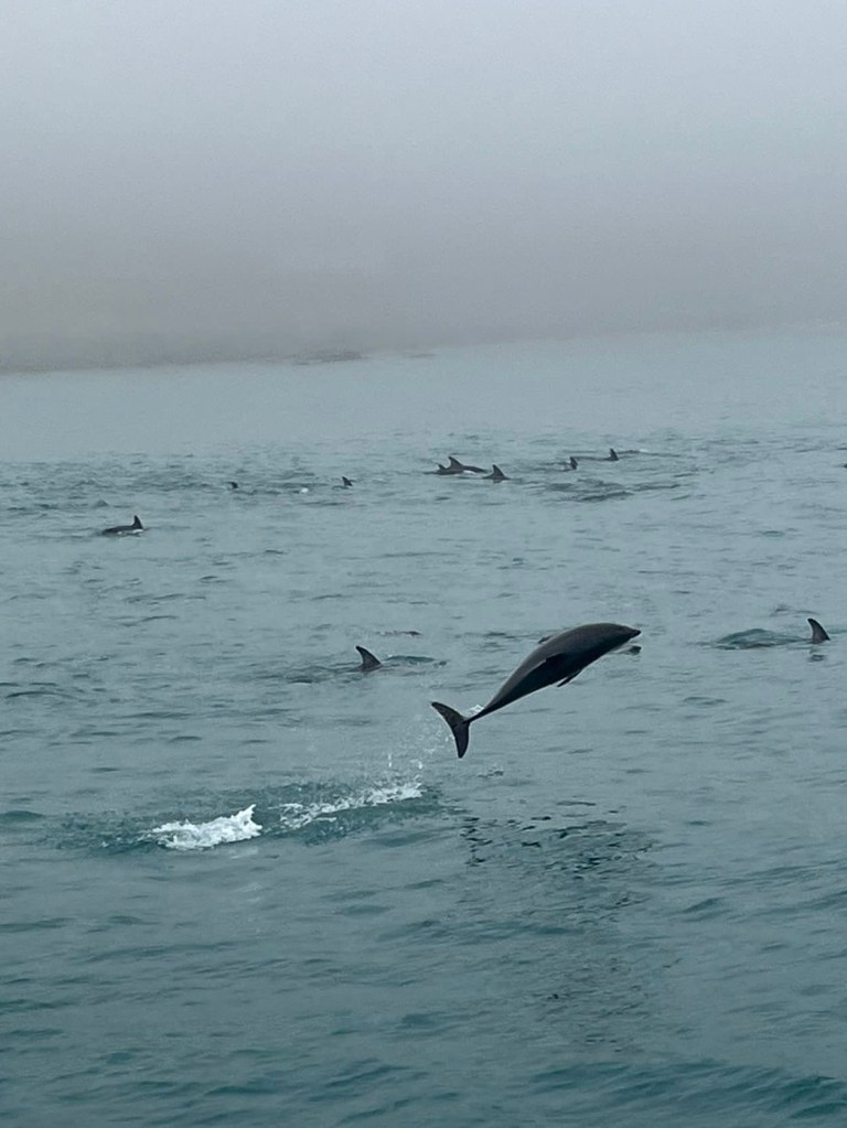 After a 15 minute joy ride, we spotted our first pod of these majestic creatures. We were told early am was when they were most playful, so our hopes were sky high and we all plopped off the back into the icy waters.