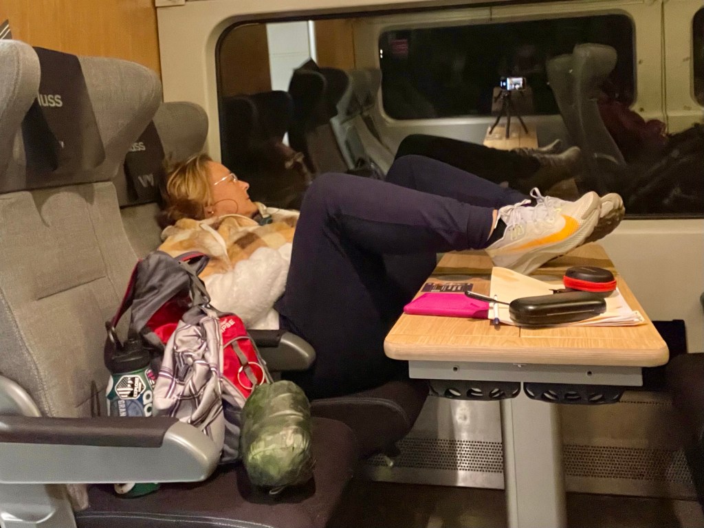 The six hour trek meandered through countrysides and numerous lakes, including a beautiful sunset peeking out from beyond the distant islands. I managed to work a little, start a new pleasure book, took my first vaca nap, dug into my snack stash, made multiple cups of hot chocolate, relaxed with a brand new playlist and enjoyed the serenity of jetting off on a new journey.