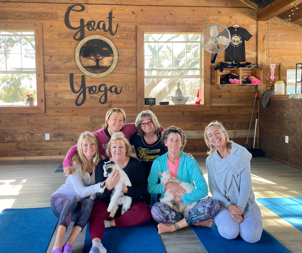 We met up at Alaska Farms for our own dose of weekend good vibes and laughs. With a princess tiara and obnoxious sash, we set up Robinβs mat dead center of the outdoor yoga pavilion to get loved on by mini goats. And they delivered!