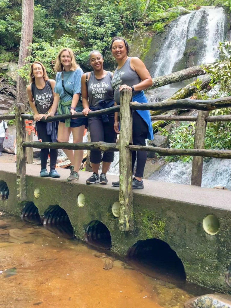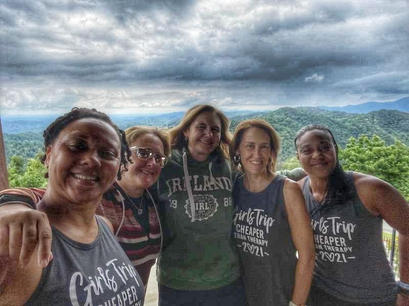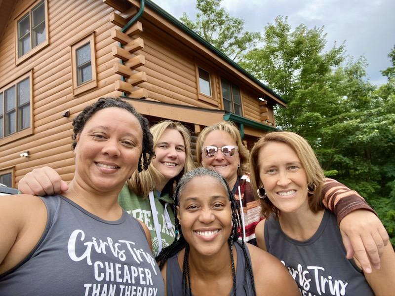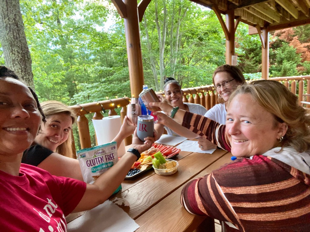 I scour for quaint but bougey cabins just outside of town. A hot tub & porch with a view are a “must have” for this group. There is just something about sitting on the porch in the cool mountain breeze with a cocktail in hand & surrounded by some of your favorite people to reminisce over the last 30 years of friendship!