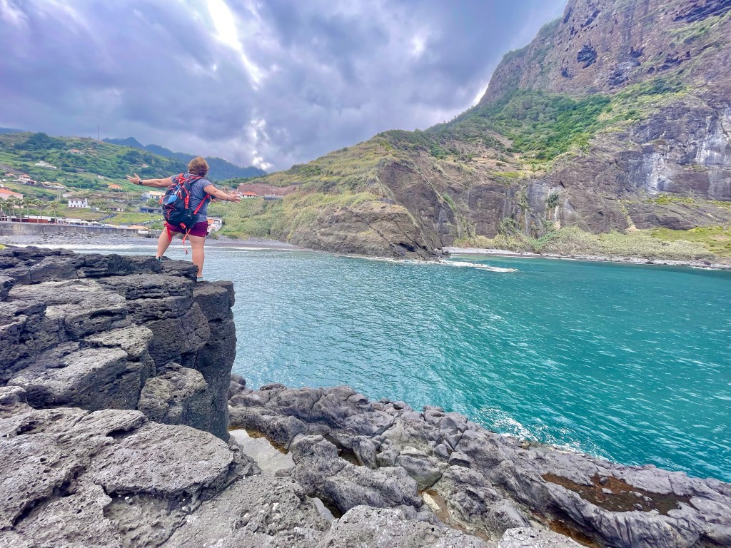 The quaint town of Santana was our launching point along the north coast, as we conquered the 6.75 mile Larano trail weaving high above. The weather and views were spectacular as we easily slid into full-on vacation mode. Ending in the beach town of Ponta de Sao Jorge, it was a no brainer to take advantage of one of the rare black sand beaches in the world.