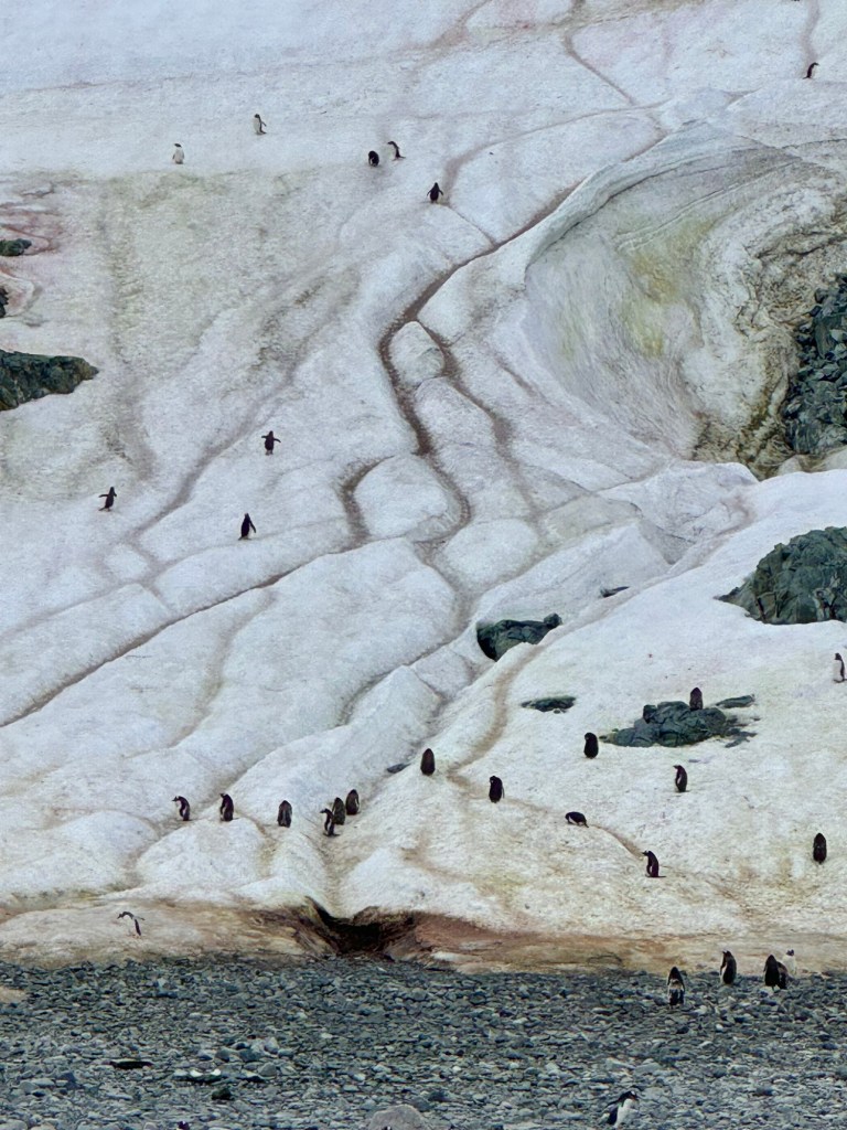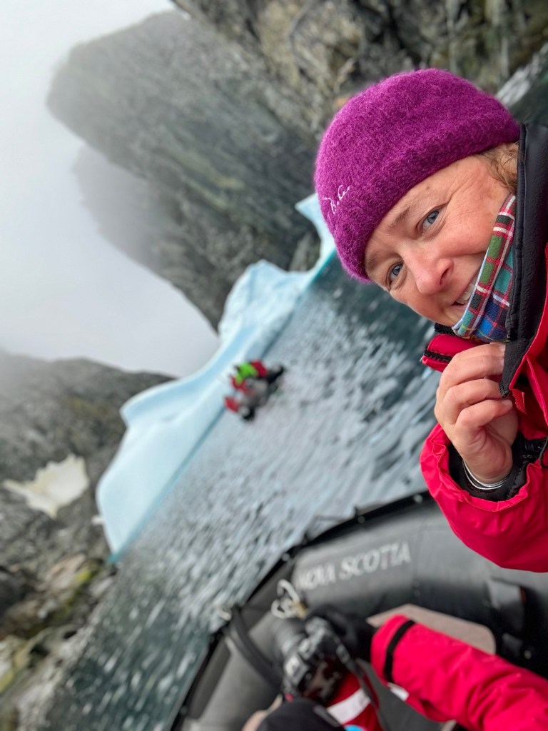 The 129 passengers were divided into four boat groups for the voyage, rotating launch times. So twice daily, we layered up at our designated spots on the second floor mud room & ventured out into the wild. I was enamored with each & every iceberg we grazed past and equally as impressed with all the wildlife encounters along the way. And we didnโt know how rare our perfect track record (8 of 8 attempts) really was!