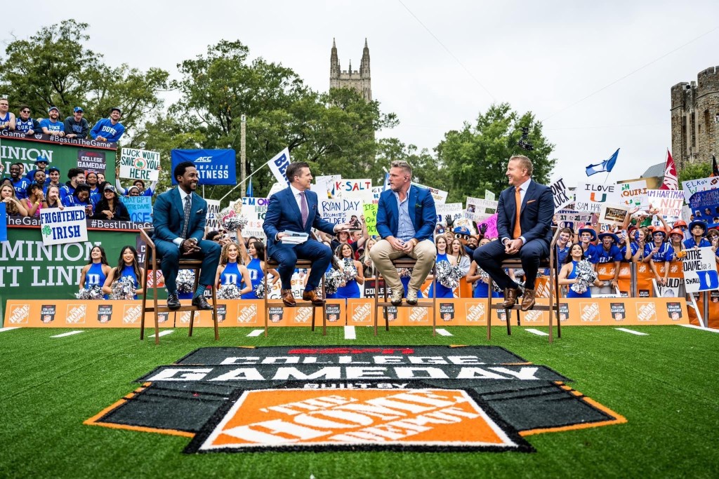 The show always ends with a celebrity guest picker, who is charged with revealing who they think we come out victorious. As a Duke alum, comedian and actor Ken Jeong makes a grand entrance and literally starts twerking on stage! Meanwhile, icon Lee Corso leaves the stage suddenly during the middle of the final segment only to return in a full on green elf outfit signaling his allegiance to the Notre Dame Fighting Irish. The crowd boos resonated loudly as the cameras faded away and we joined in on the all day tailgate nearby.