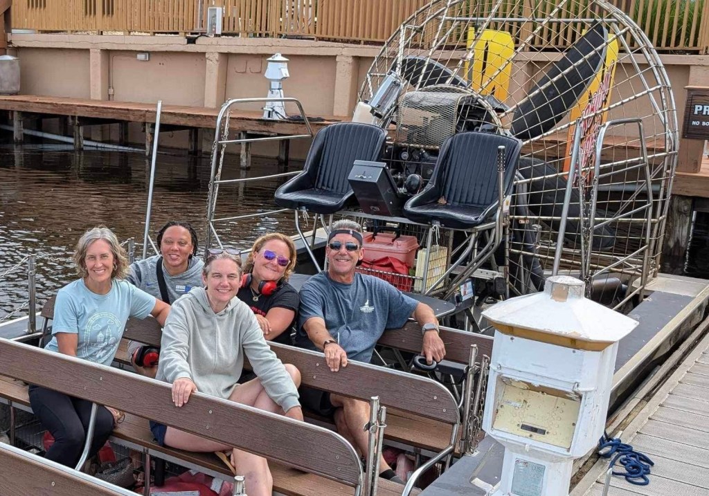 I surprised everyone with an elegant dinner to close out day 1, as we all toasted to long lasting friendship and endless happy memories. We enjoyed some good old fashioned pool time, a cruise on a classic airboat through the swamps, actually missed our monster dune buggy ride prior to enjoying the longest running weekly rodeo in the US via our special viewing area. The icing on top was an eerily, perfect sunset popping out after a monsoon and roasting s’mores at the bonfire (even while walking through knee deep, murky water to get to the fire pit).
