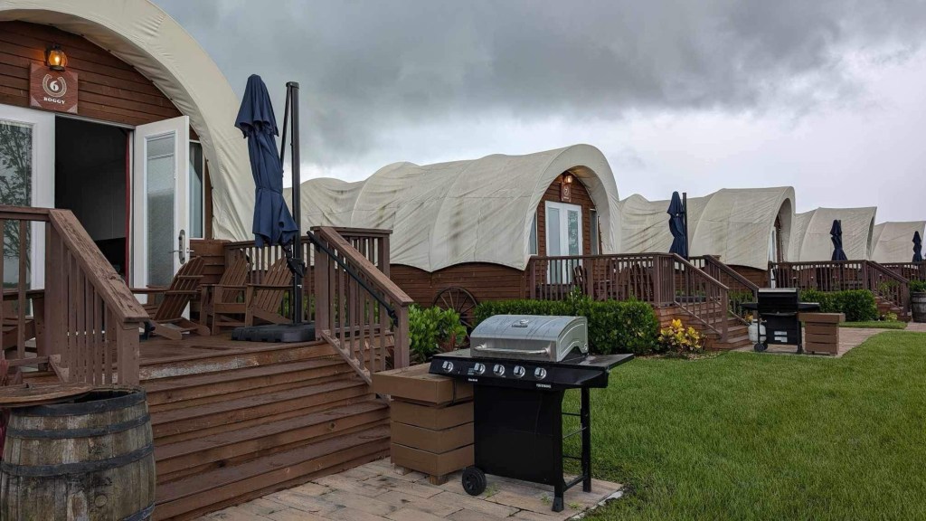 After sleeping in a bit, we took off for some H2O & FL sunshine therapy at Cocoa Beach. We may or may not have found some Jell-O shots and went back for round #2 before hitting the road for a 2 hr trek down to the middle of nowhere & the FL version of a dude ranch. The Westgate Resort team really went above and beyond to make our weekend special. First up, our accommodations got upgraded from the ultra cool teepee to each having our own bougee old fashioned wagon.