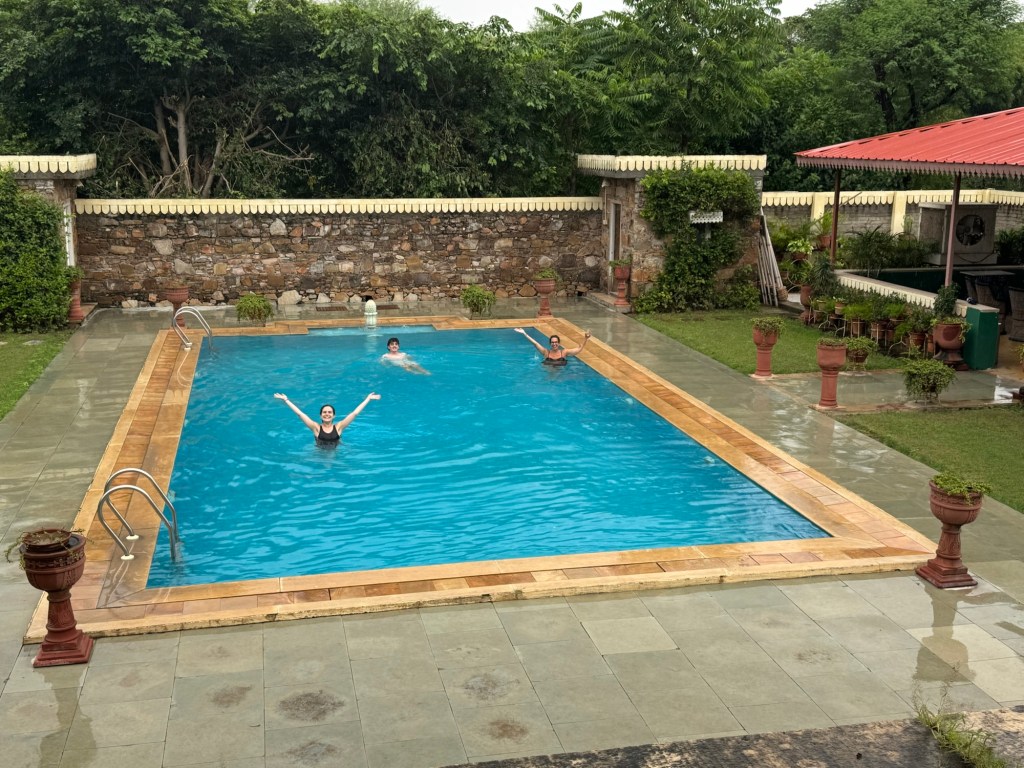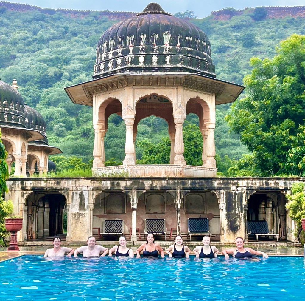 We all made a beeline for the unexpected luxury of an aqua blue swimming pool, nestled underneath the ancient temples of 3 fallen royal family members. The drinks were flowing, music pumping & water games rocking with plenty of laughter in the air.