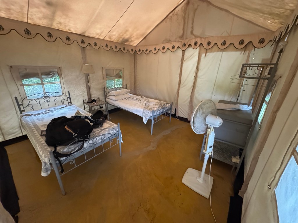 Our adventure group arrived via a long pothole infested backroad to a quiet oasis outfitted with glamping tents.